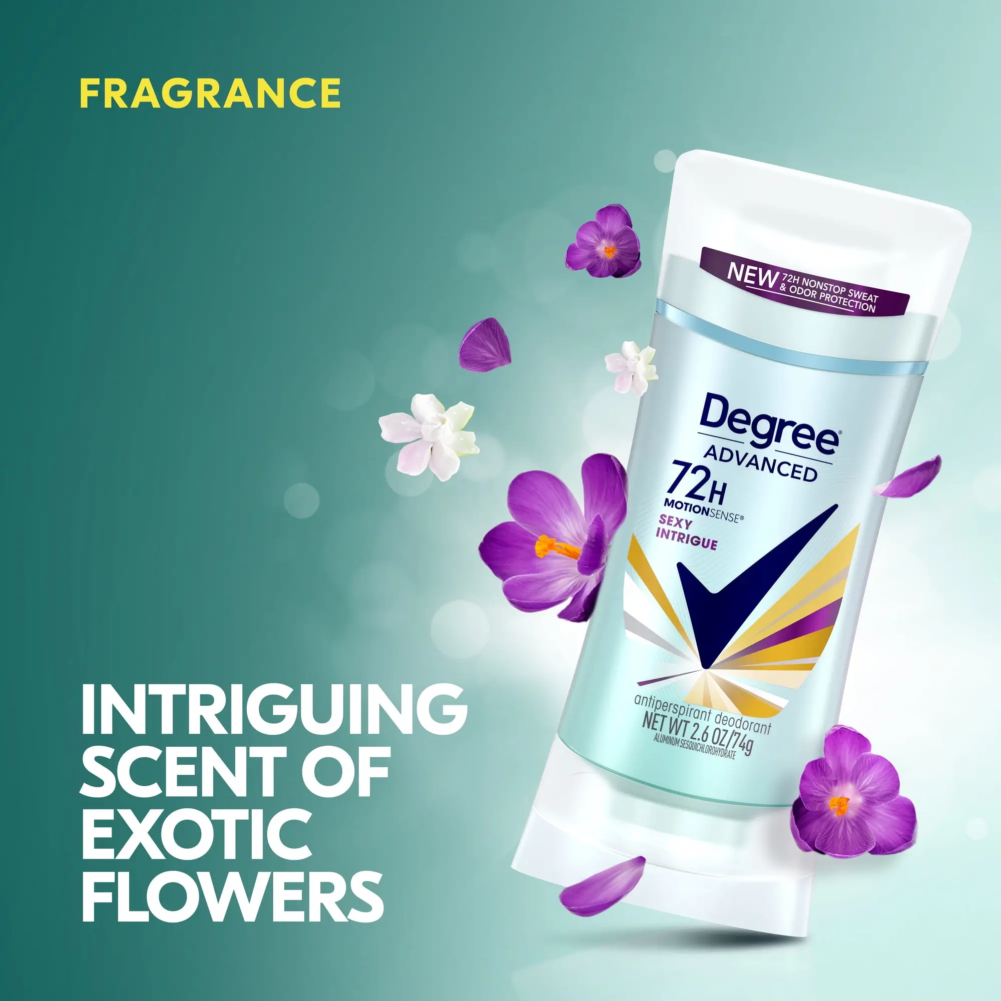 - NONSTOP FRESHNESS: Degree Advanced Sexy Intrigue Antiperspirant Deodorant keeps you feeling fresh and clean with 72-hour sweat and odor protection.