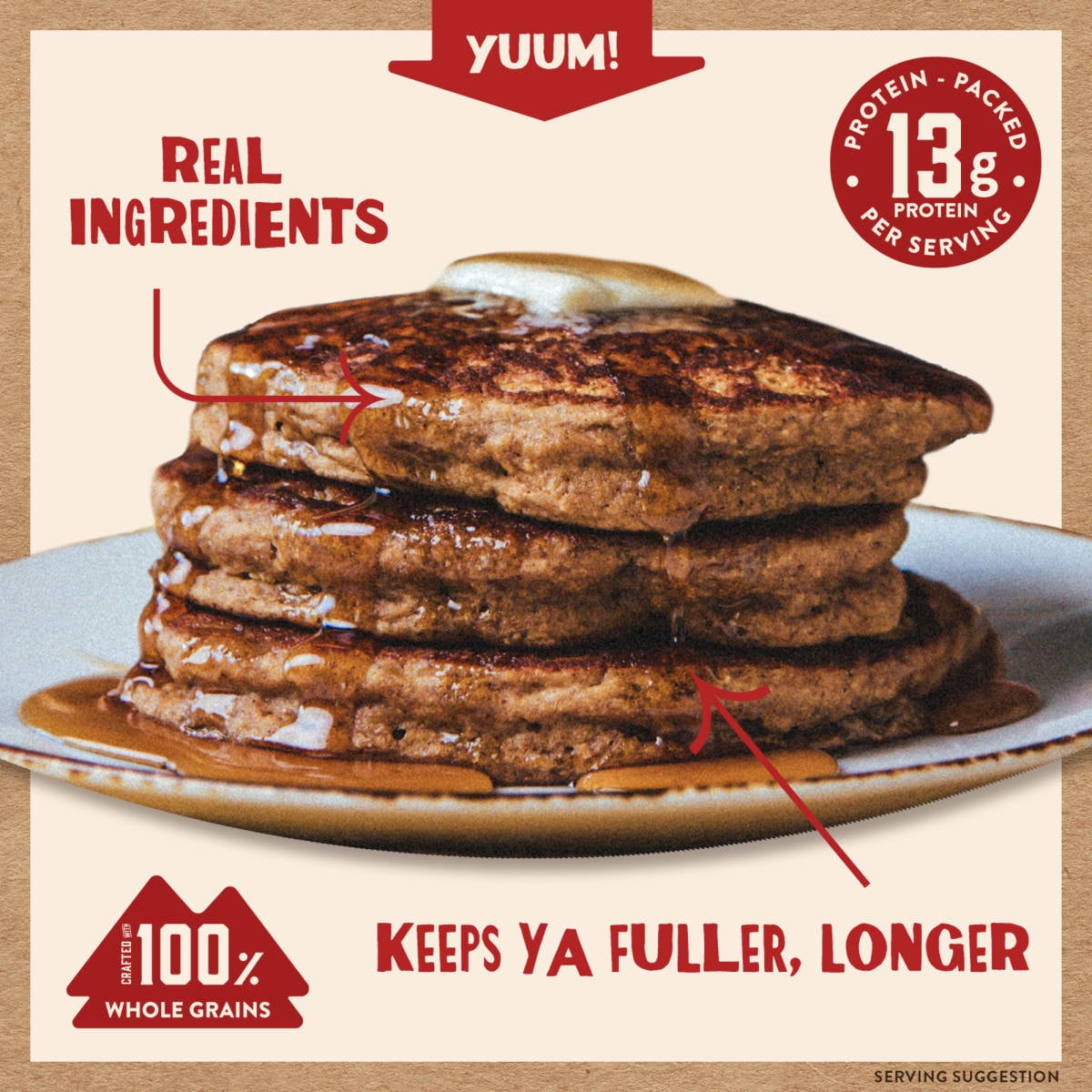 100% Whole Grain Wheat Flour, Cane Sugar, 100% Whole Grain Oat Flour, Pumpkin Powder, Wheat Protein Isolate, Flaxseed Meal, Milk Protein Concentrate, Whey Protein Concentrate, Leavening (Cream of Tartar, Baking Soda), Cinnamon, Sea Salt, Nutmeg, Ginger, Cloves, Allspice.