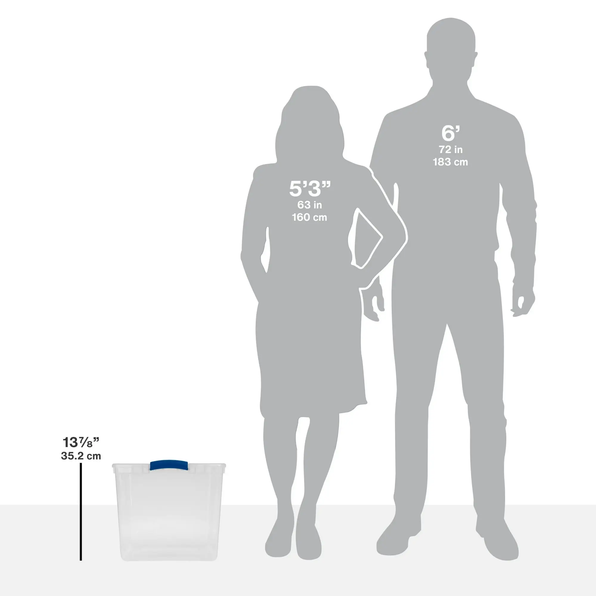 Step up to Sterilite’s versatile 66 Quart Clear Latching Storage Bin with lid and get organized! The clear base and lid let you easily view and locate stored contents from any angle. The color accent latches keep the lid attached to the base, to keep items contained. The recessed lids help bins stack neatly for efficient use of vertical space. This popular size plastic storage container is perfect for clothing, blankets, boots, off-season gear, and bulky items. This is the ideal solution for a variety of storage challenges, helping to bring order to closets, bedrooms, craft rooms, and dorms! The overall assembled dimensions of this item are 24″ L x 16″ W x 13 7/8″ H.